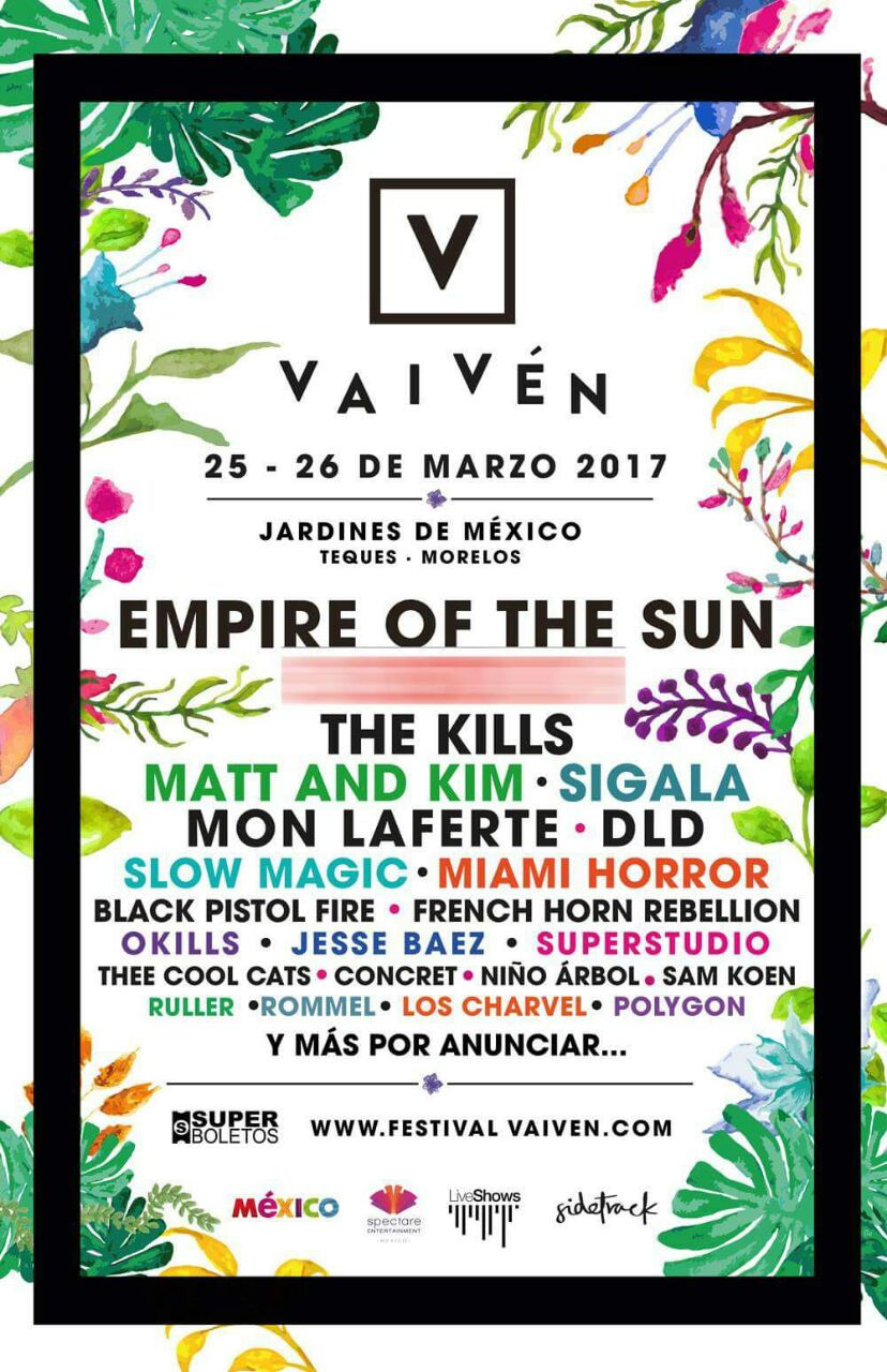 El Festival Vaivén se llevará a cabo este 25 de marzo en Jardines de México, Morelos y de invitados tendrá a Empire of The Sun, Matt and Kim, The Kills, Okills y muchos mas por anunciar. Checa el line up completo abajo: